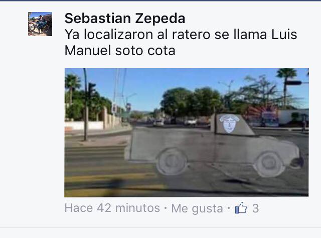 “El día de ayer en el tianguis (feria) del (estadio) Héctor Espino (Hermosillo, México) nos robaron una pick up Nissan modelo 91 con el número de placas vb52780. El carro está fondeado gris con el techo negro, si lo ven favor llamarme. No tengo fotos, pero les dejo un dibujo”, anunció en el grupo OfertasBeta.com.