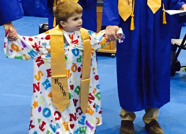 “Después, el director Dustin Day anunció a Jordan, quien estaba vistiendo su pequeña capa y sombrero y el presidente de la clase salió de la audiencia y lo acompañó al escenario”, afirmó. “Estaba llorando tan fuerte que ni siquiera pude tomar fotos o grabar un video. Pude ver realizarse un sueño de Jordan y mío”, concluyó.