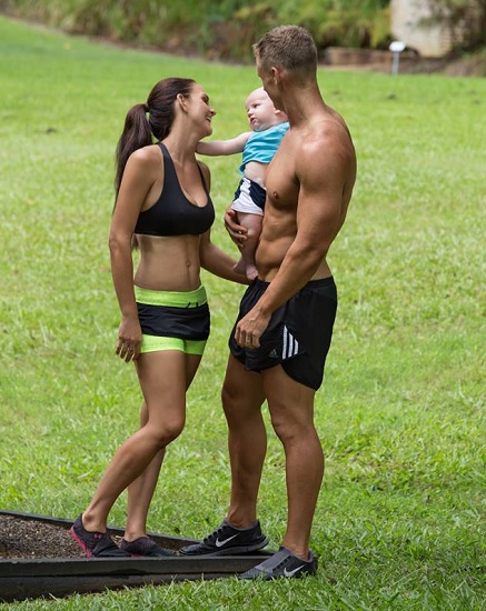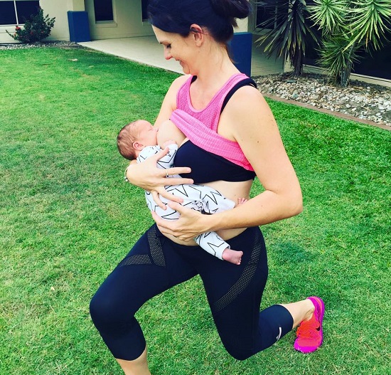La bella madre de seis niños mostró cómo ejercitaba al mismo tiempo de que alimentaba a su último bebé, de tan solo dos semanas de vida. “Pillé a Sharny haciendo multitasking hoy en público”, escribió su esposo, Julius Kieser, junto a la etiqueta #breastercising (juego de palabras que combina “amamantar” y “ejercitar”).