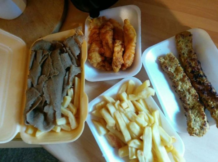 Eso fue justamente lo que le pasó a un inglés de Manchester, Inglaterra, que a eso de las cuatro de la mañana del sábado pasado decidió pedir un kebab y papitas fritas a domicilio. Está claro que fue una gran noche.