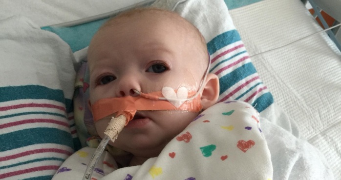El hombre compartió una imagen de su bebé, quien contrajo un peligroso virus respiratorio Sincitial mientras estaba siendo tratada por meningitis en el hospital.