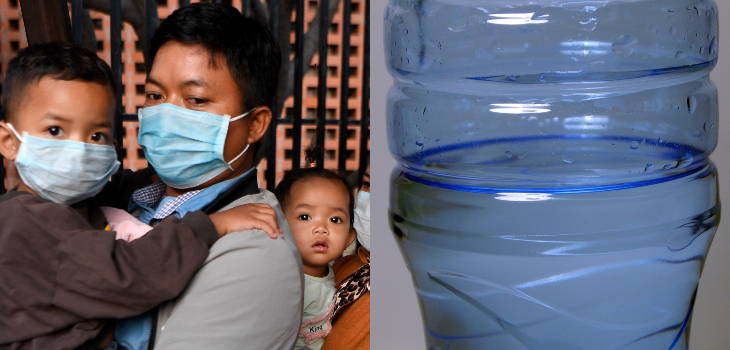 Childrean wear an improvised face protection made from water bottles in order to protect against the #coronavirus at the airport arrival terminal in Guangzhou, Guangdong Province, #China, 01 February 2020#coronavirus #ChinaVirus #coronaviruschina #chinaphotography #COVID2019 pic.twitter.com/UBROritJYB