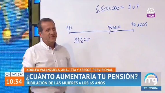 Ubicándose en este escenario, el matinal Mucho Gusto invitó al analista y asesor previsional Adolfo Valenzuela, quien explicó a cuánto podrían llegar a subir las pensiones para las mujeres, si se aumenta a 65 años la edad de jubilación.