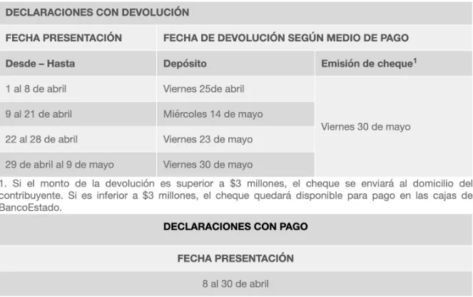 Nota: Si el monto de la devolución es superior a $3 millones, el cheque se envía al domicilio del contribuyente. Si es menor, estará disponible para cobro en BancoEstado.