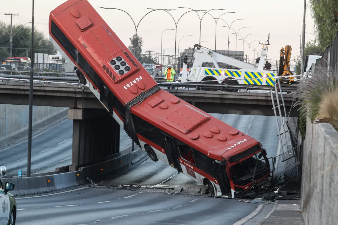 Los equipos de emergencia y socorro desplegados en el lugar trabajaron con grúas para retirar el bus del sitio, y poder habilitar el tránsito en la Autopista Central, altamente concurrida.