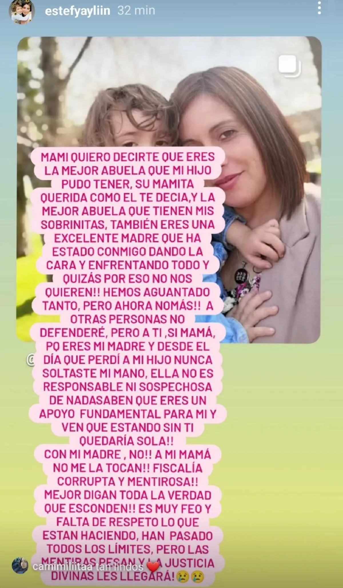 En su cuenta de Instagram, Estefy subió una historia con un mensaje para su madre.