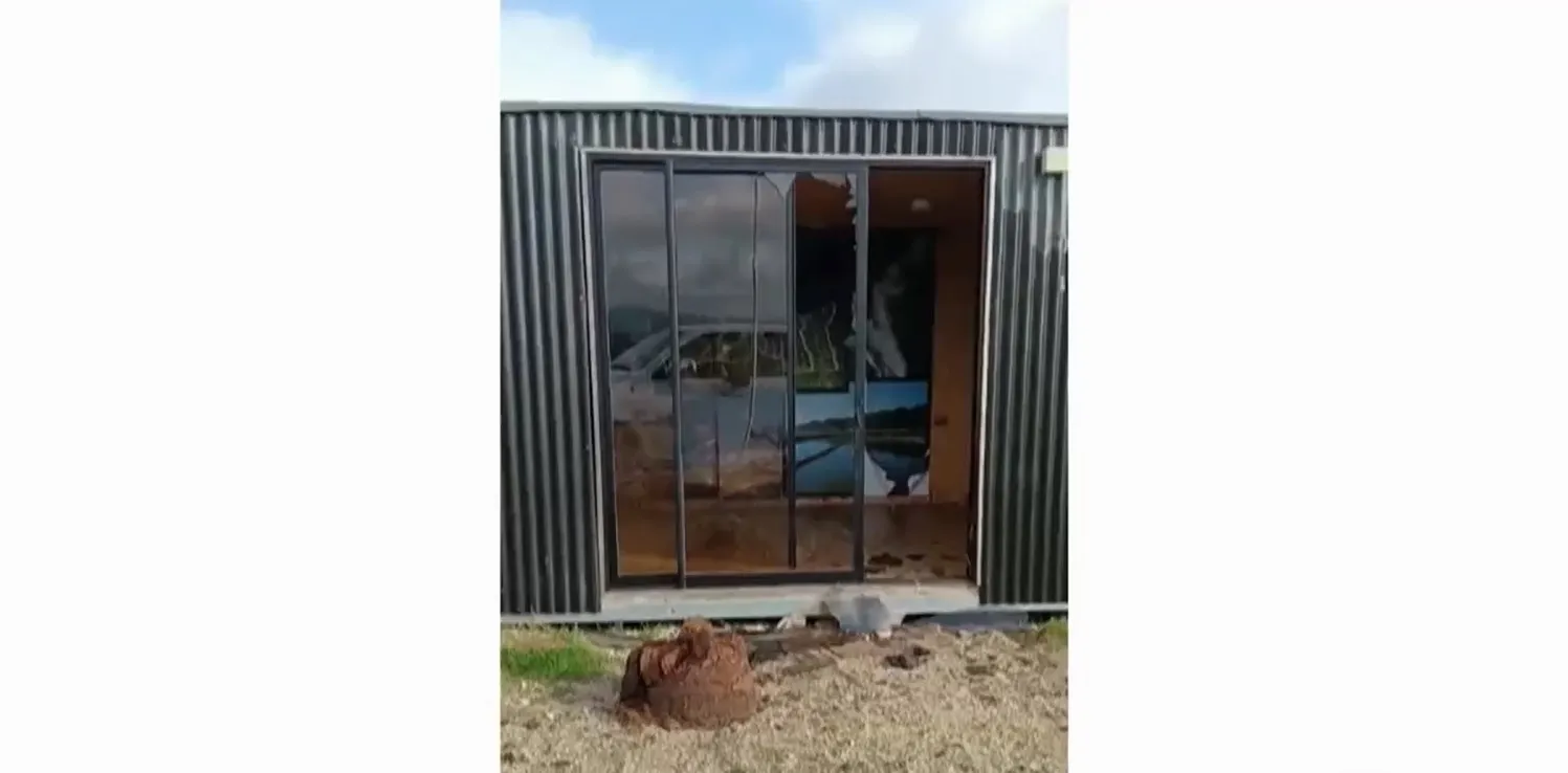 Fue en el matinal Mucho Gusto, donde mostraron un video grabado por un testigo que pasó por el lugar. En él, se ven los ventanales rotos de la cabaña, que se ubica en el sector Vista Cuarzo, informaron en el programa.