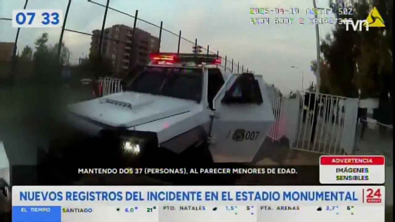 Nuevos videos revelan posibilidad de atropello por parte de Carabineros en tragedia del Estadio Monumental que dejó dos muertos durante partido de Colo-Colo. Reportes iniciales indican que las víctimas fallecieron tras caída de reja en avalancha de hinchas, pero diálogos de cámaras corporales sugieren posible responsabilidad del vehículo blindado. Tres carabineros imputados y apartados de funciones, aunque aún no formalizados. Versiones preliminares mencionan atropello a menores de edad, mientras falta de evidencia en cámaras de seguridad aumenta interrogantes sobre incidente. Retraso en llegada de ambulancia también genera controversia en investigación en curso.