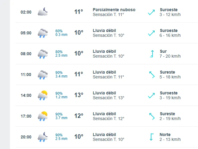 Sin embargo, será en la tarde cuando lleguen los chubascos más intensos, especialmente en sectores de precordillera y cordillera, donde podrían superar los 8 milímetros de agua.