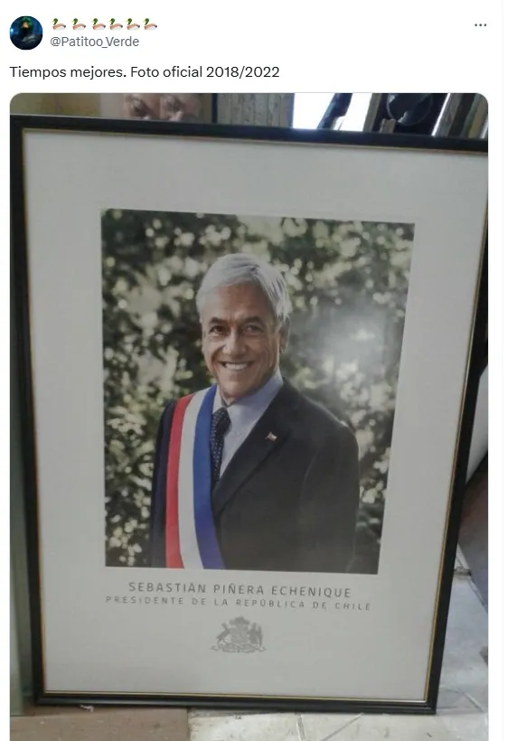 Parte de la cara del ahora exdirectivo de Canal 13, aparece justo sobre el marco del retrato presidencial de Sebastián Piñera.