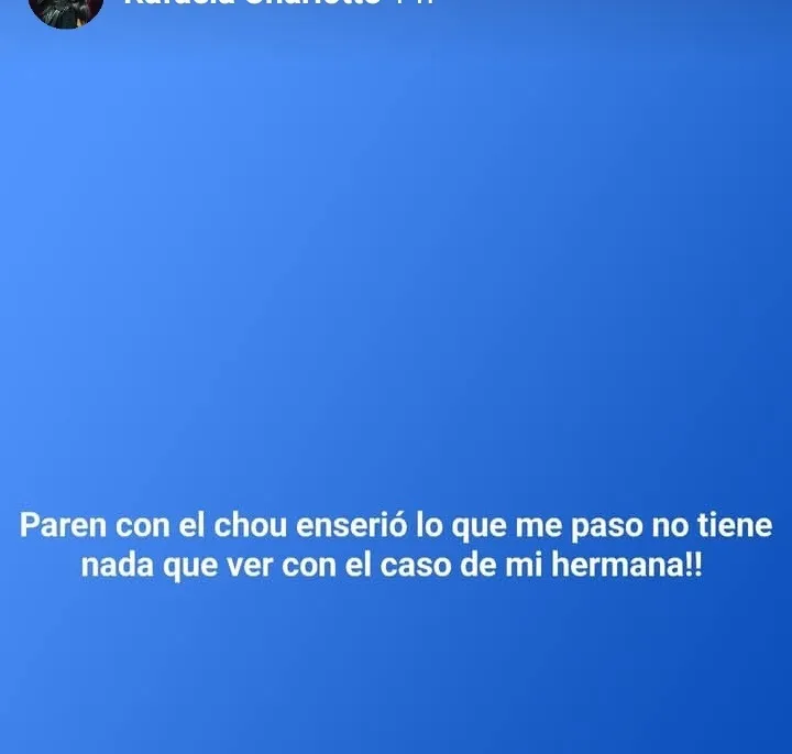 "Paren con el show, en serio", escribió Cristal. "Lo que me pasó no tiene nada que ver con el caso de ,mi hermana", agregó.