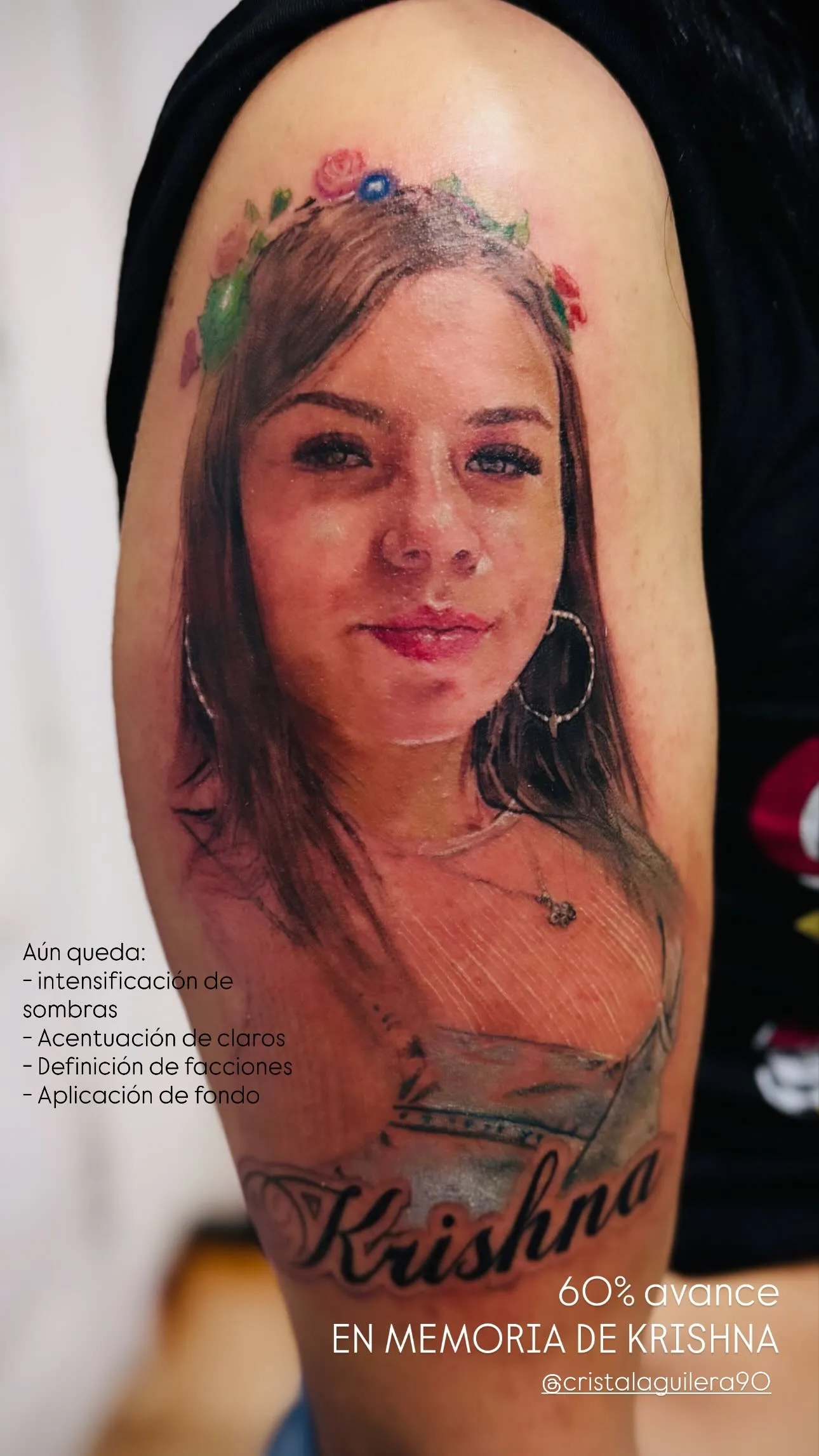 Cristal decidió homenajear a su hermana tatuando su rostro en uno de sus brazos.