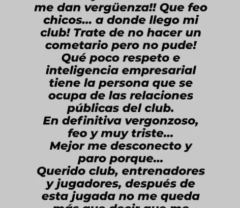 "A dónde llego mi club. Traté de no hacer un comentario, pero no pude. Qué poco respeto e inteligencia empresarial tiene la persona que se ocupa de las relaciones públicas del club", agregó, evidentemente molesta.