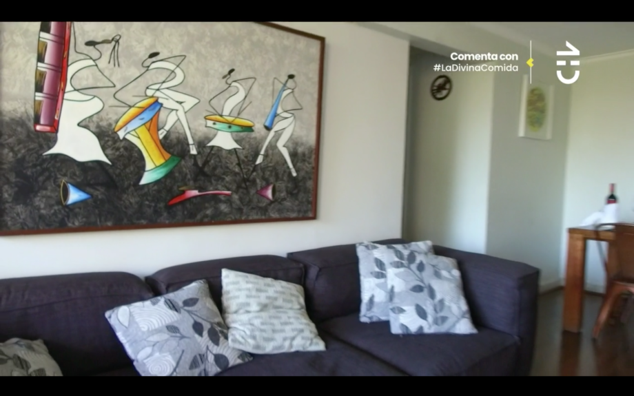 En el living brillaron dos cuadros: uno heredado de su hermano, quien también vivió en el espacio; y un regalo de la Teletón, en agradecimiento por conducir un seminario online durante la pandemia.