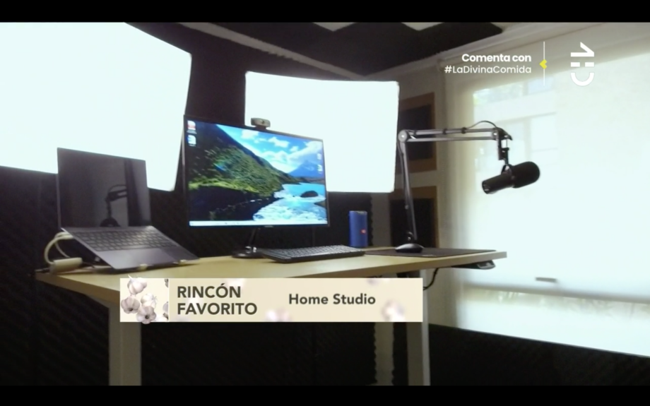 “La pandemia me obligó a estar mucho en casa y trabajando desde acá”, sostuvo del espacio equipado con computadores, varias pantallas, micrófonos, aislantes de sonido y focos.