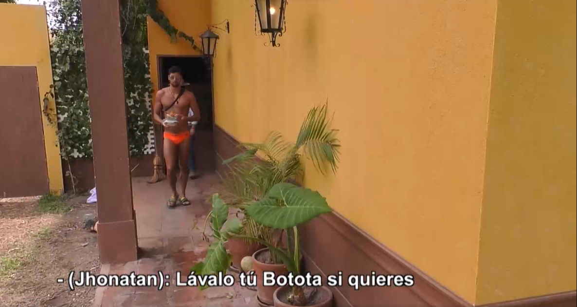 Acto seguido, Jhonatan le exclamó a Botota que él debería lavar el recipiente, si tanto le molestaba.