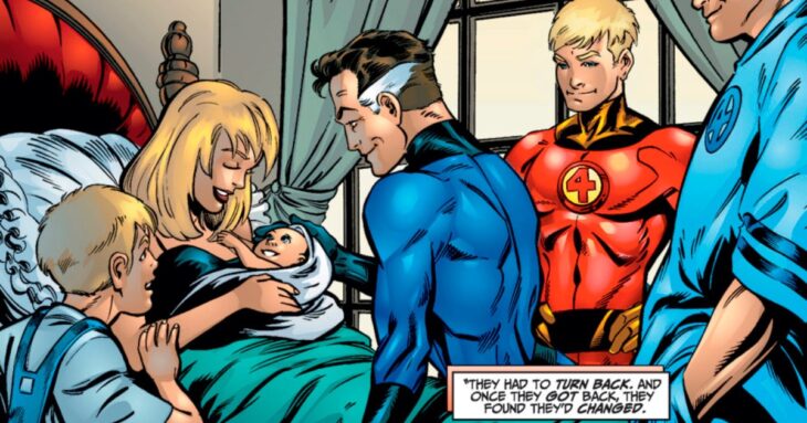 Y la llegada de la bebé Valeria completó la familia en Los Cuatro Fantásticos (1998) #54.