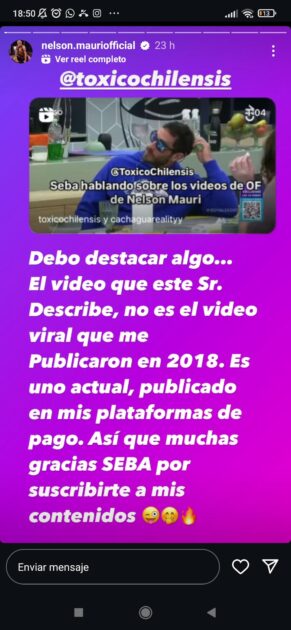 Pero esto no fue lo único que respondió Nelson Mauri. Ante la viralización de sus dichos, decidió compartir una historia ahondando en el tema.