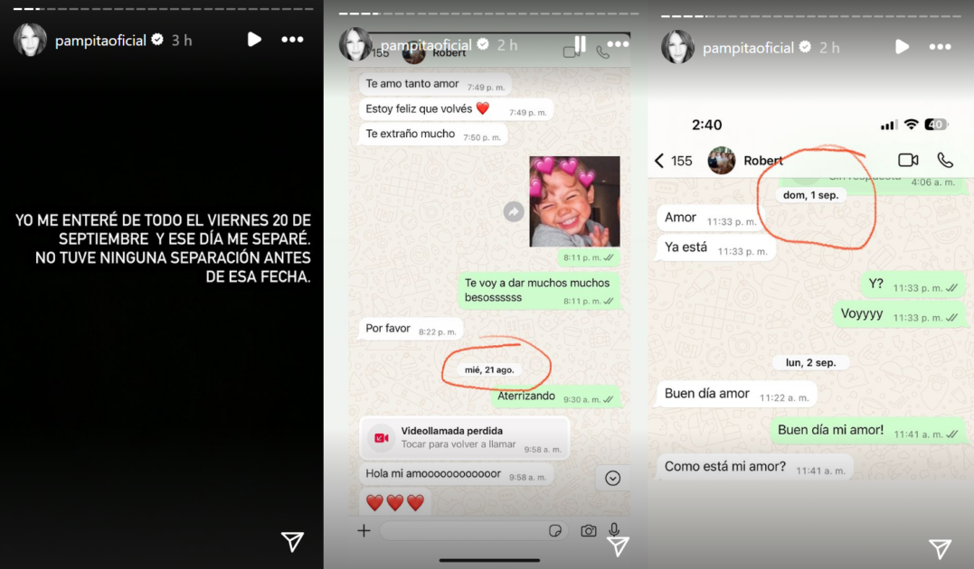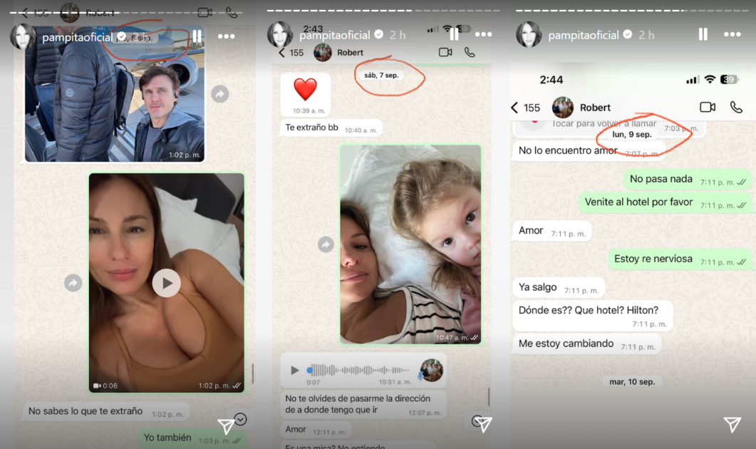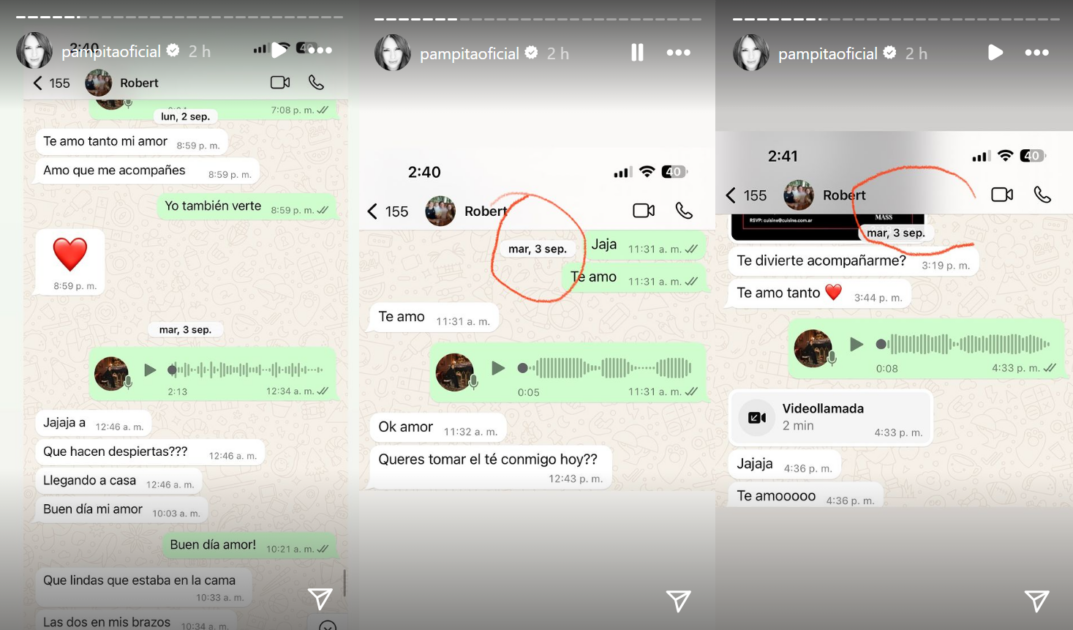 En las capturas, que datan desde fines de agosto hasta el 20 de septiembre, se ve un intercambio de palabras cariñosas entre la pareja a través de WhatsApp, desmintiendo un tiempo de separación superior a una semana.