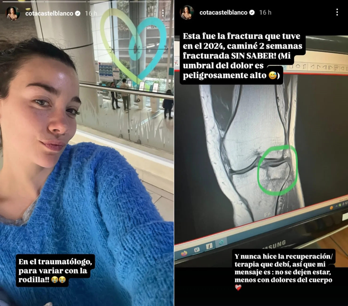 "Esta fue la fractura que tuve en el 2024. Caminé dos semanas fracturada sin saber. Mi umbral del dolor es peligrosamente alto", explicó.