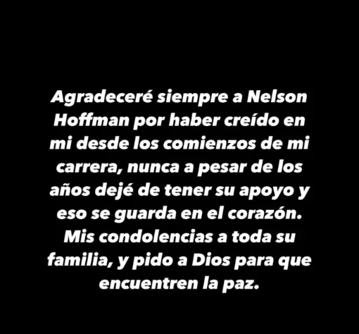 “Agradeceré siempre a Nelson Hoffmann por haber creído en mí desde los comienzos de mi carrera. Nunca, a pesar de los años, dejé de tener su apoyo y eso se guarda en el corazón”.