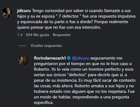 Ante las críticas, Florinda Meza usó su cuenta de Instagram para responder directamente a quienes cuestionaron las declaraciones que hizo en ese entonces para el programa Pasiones de TVN, consignó RPP.