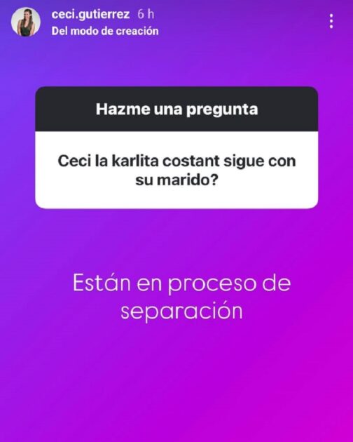 Sin embargo, las fuentes de Cecilia Gutiérrez -que nunca se equivocan- apuntan a una crisis que estaría distanciando a Karla Constant de su pareja.