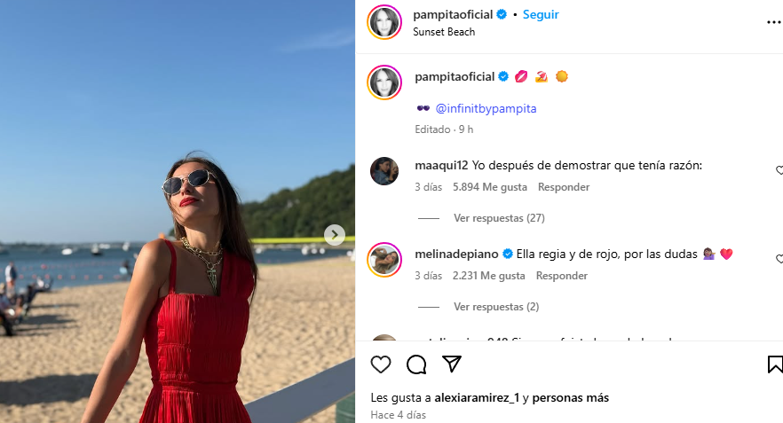 Más tarde ese día, publico postales en su Instagram, donde le dio like a dos cometarios: "Yo después de demostrar que tenía razón" y "Ella regia y de rojo, por las dudas".