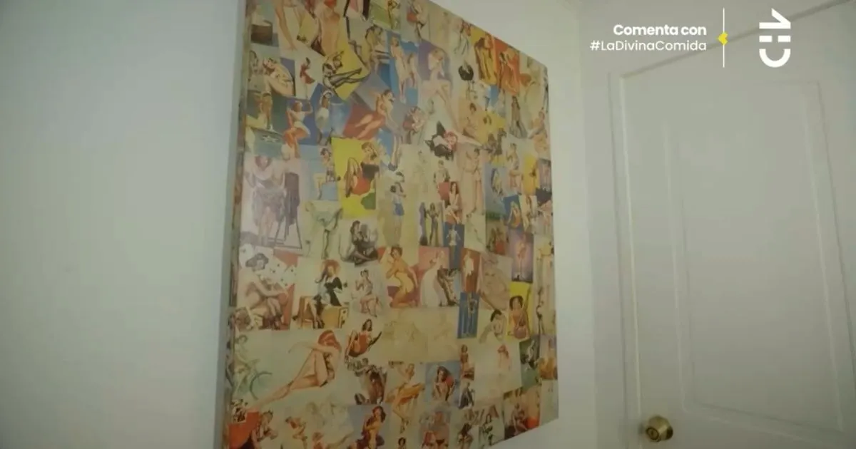 Yamna Lobos enseñó un curioso cuadro que adornaba su pared en la entrada. En él había un collage de diferentes fotos e ilustraciones de mujeres de los años 50'.