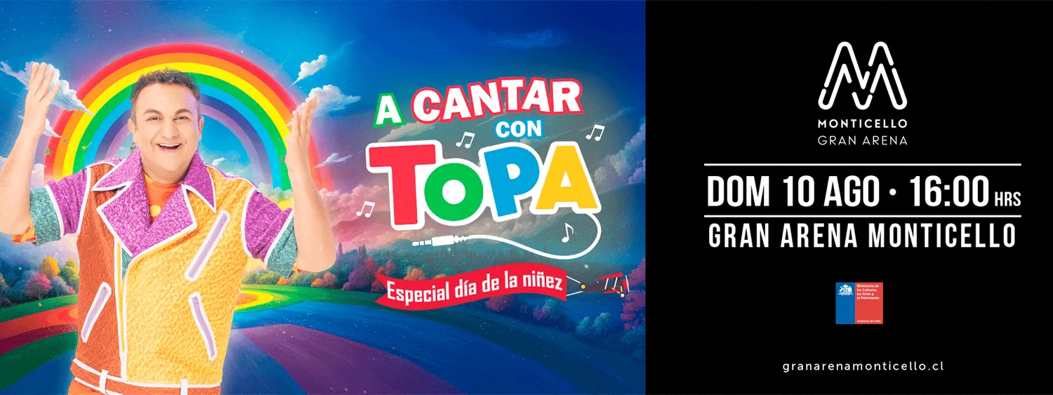 Topa regresa al escenario del Gran Arena Monticello con su espectáculo "A Cantar con Topa", un show lleno de canciones, color y alegría pensado para disfrutar en familia.
