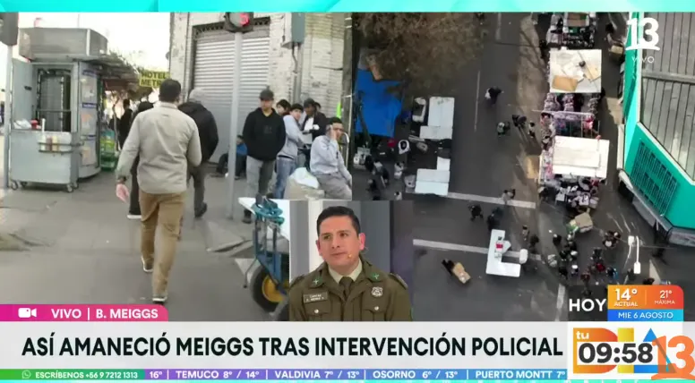 En un despacho en vivo para el matinal Tu Día de Canal 13, el periodista Rodrigo Pérez vivió momentos de tensión al ser amenazado por comerciantes ambulantes en el barrio Meiggs tras una intervención policial. Pérez fue emplazado en cámara por un vendedor y posteriormente amenazado directamente por otro, lo que generó reacciones de la animadora Priscilla Vargas. La confusión en pantalla se debió a las intimidaciones para que no se grabara cierta dirección, lo que llevó a Pérez a denunciar que se creían dueños del espacio.