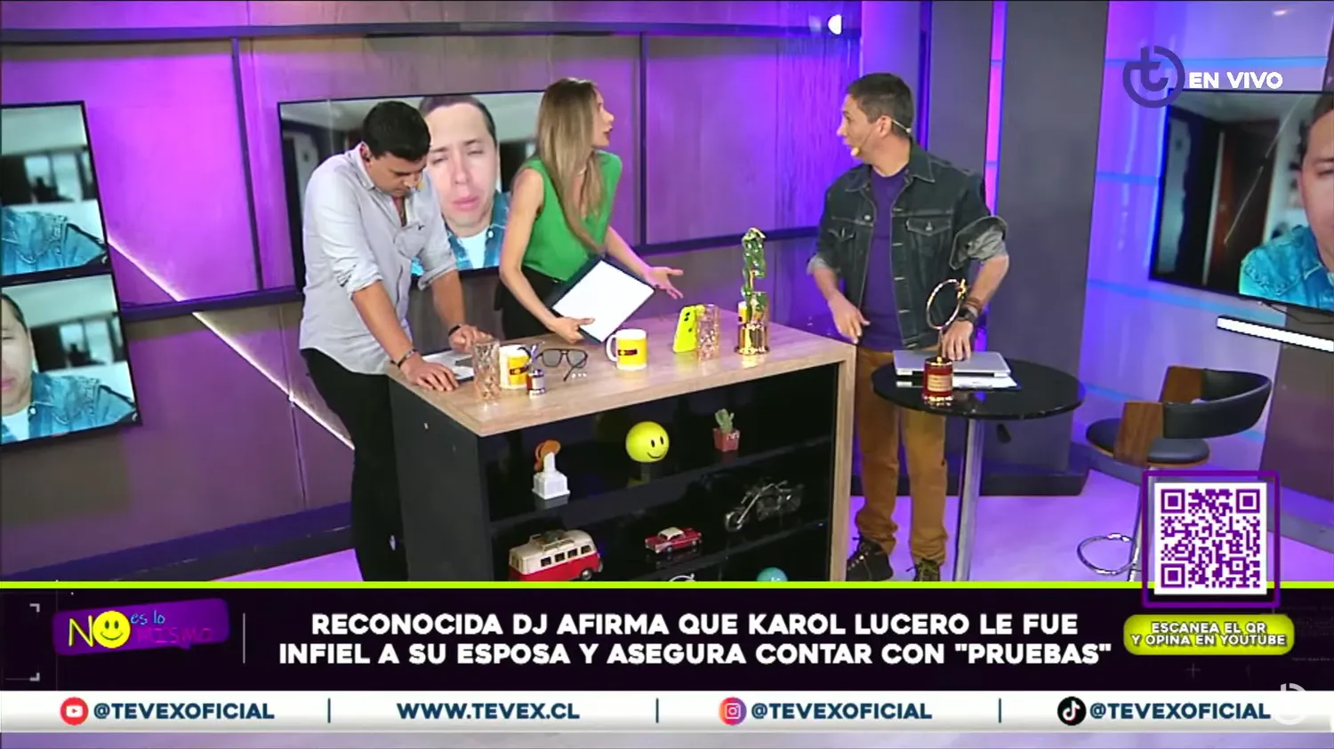 En el programa No es lo Mismo de Tevex, el animador Patricio Sotomayor interrumpió a sus panelistas Martín González y Karoll Román por sus comentarios sobre la supuesta infidelidad de Karol Lucero con la DJ Ilasia Henríquez. Román generó rechazo al insinuar que Henríquez buscaba quedar embarazada con cualquier hombre. Sotomayor expresó su molestia en pantalla, acusando a sus colegas de normalizar la infidelidad y responsabilizar a la mujer. La intervención de Henríquez, quien aclaró no buscar tener un hijo con cualquiera, aumentó la tensión. Sotomayor criticó la falta de respeto hacia la DJ y cerró con un mensaje en contra de la agresión en los medios.