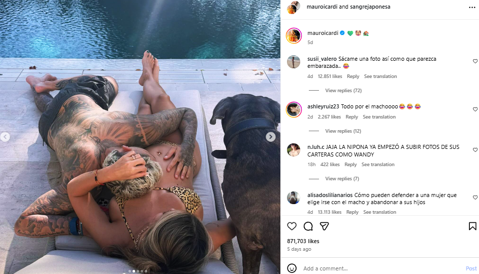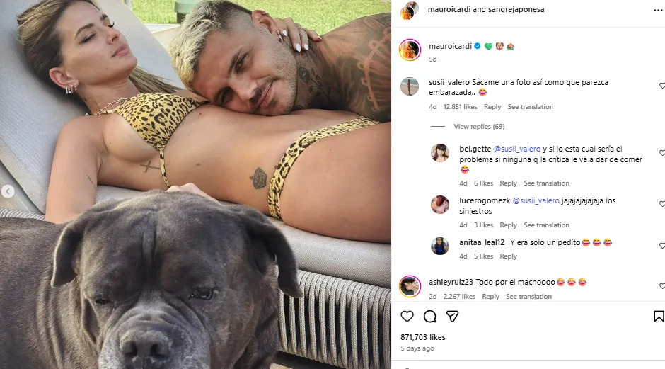 Sin embargo, la postal que más llamó la atención fue una en que se puede ver a Mauro Icardi reposado sobre el vientre de su mujer apoyando su cabeza y mano.
