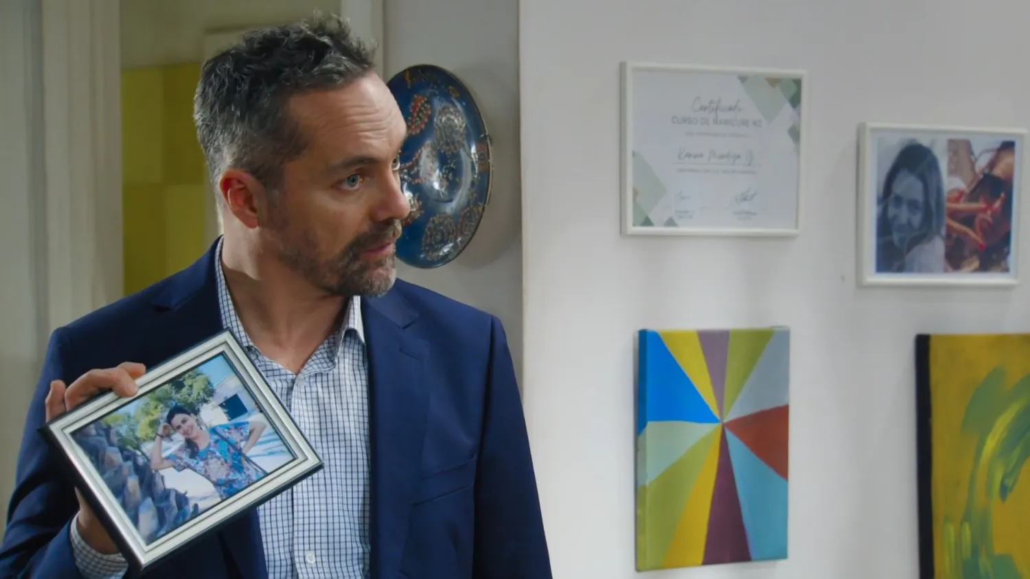 Sosteniendo una foto de Ángela, le advierte que la investigación en la que está metida es peligrosa.