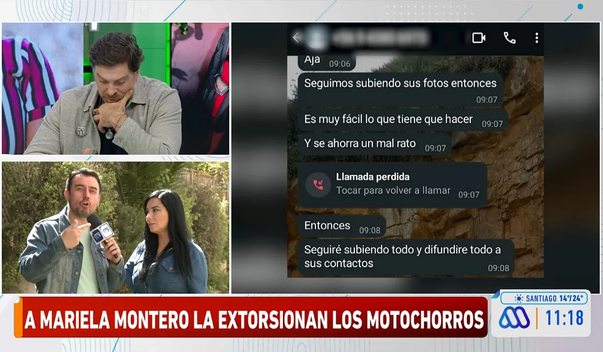En medio de la angustia, Montero explicó que, tras el robo, el sujeto comenzó a contactarse con personas de su entorno cercano: "No solamente viví la situación horrible de sentir que alguien me robara, en la vereda de mi casa, sino que encima empezó a contactarse con gente, familiares míos o mi pareja. Empezó a extorsionarme con fotos", lamentó.
