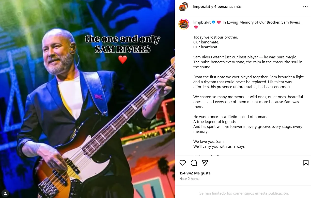 “Hoy perdimos a nuestro hermano. Nuestro compañero de banda. Nuestro latido. Sam Rivers no solo era nuestro bajista; era pura magia. El pulso de cada canción, la calma en el caos, el alma en el sonido”, expresó el grupo en un sentido mensaje publicado en su cuenta oficial de Instagram.
