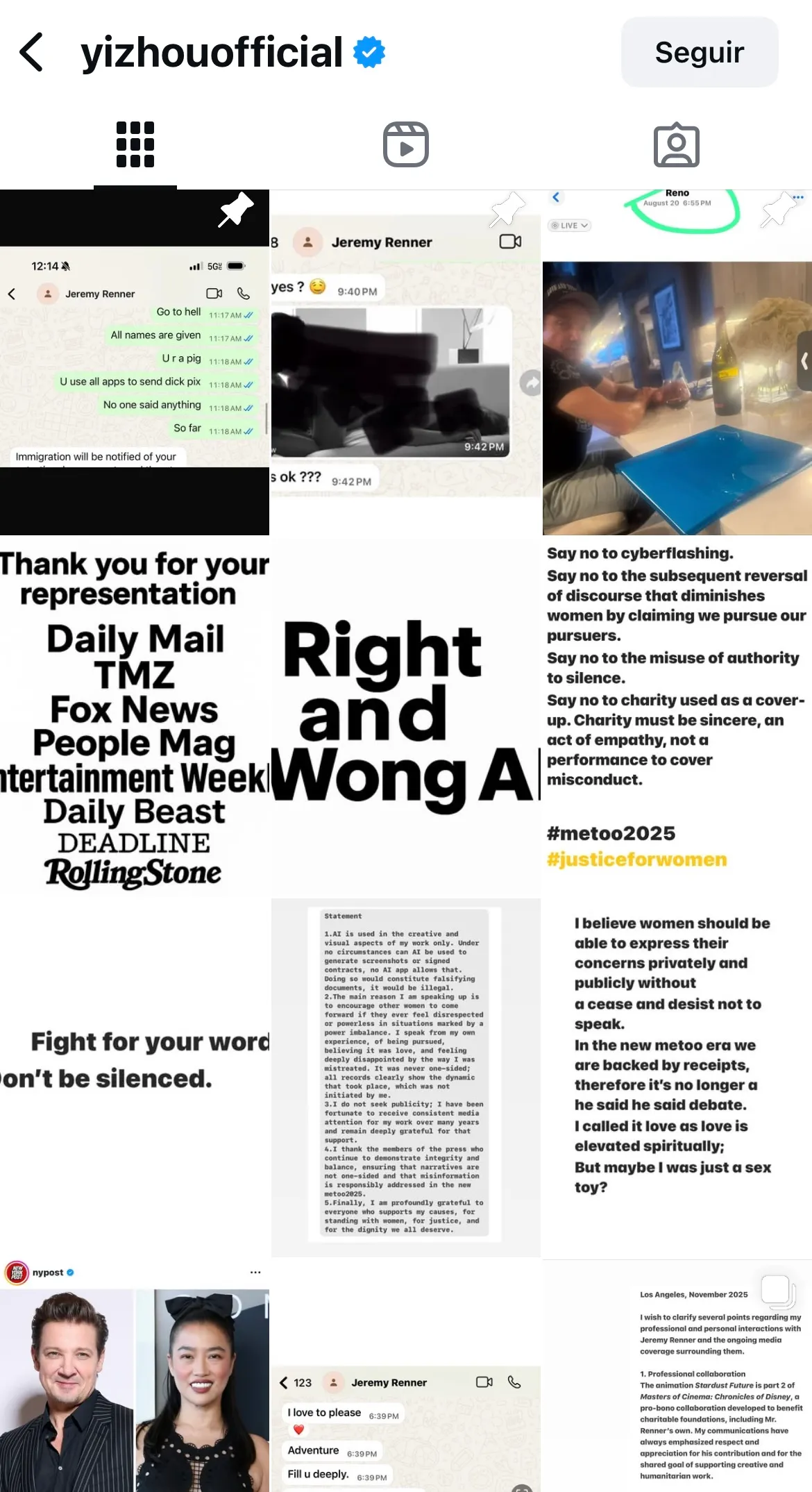 Según consignó Perfil, frente a estas declaraciones, el abogado de Renner, Marty Singer, aseguró que todo se trata de una manipulación por parte de la directora, afirmando que: “La Sra. Zhou ha acosado y perseguido de forma implacable y agresiva a mi cliente durante meses”.