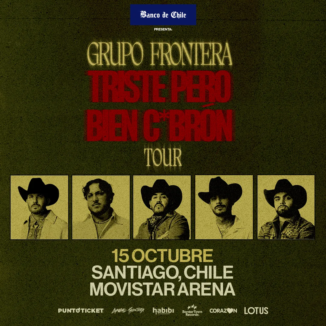 Tras un año histórico marcado por reconocimientos y momentos que definieron su carrera, los ganadores del Latin Grammy, Grupo Frontera, anuncian su esperada gira internacional 'Triste Pero Bien C*brón Tour', que los traerá de vuelta a Chile.