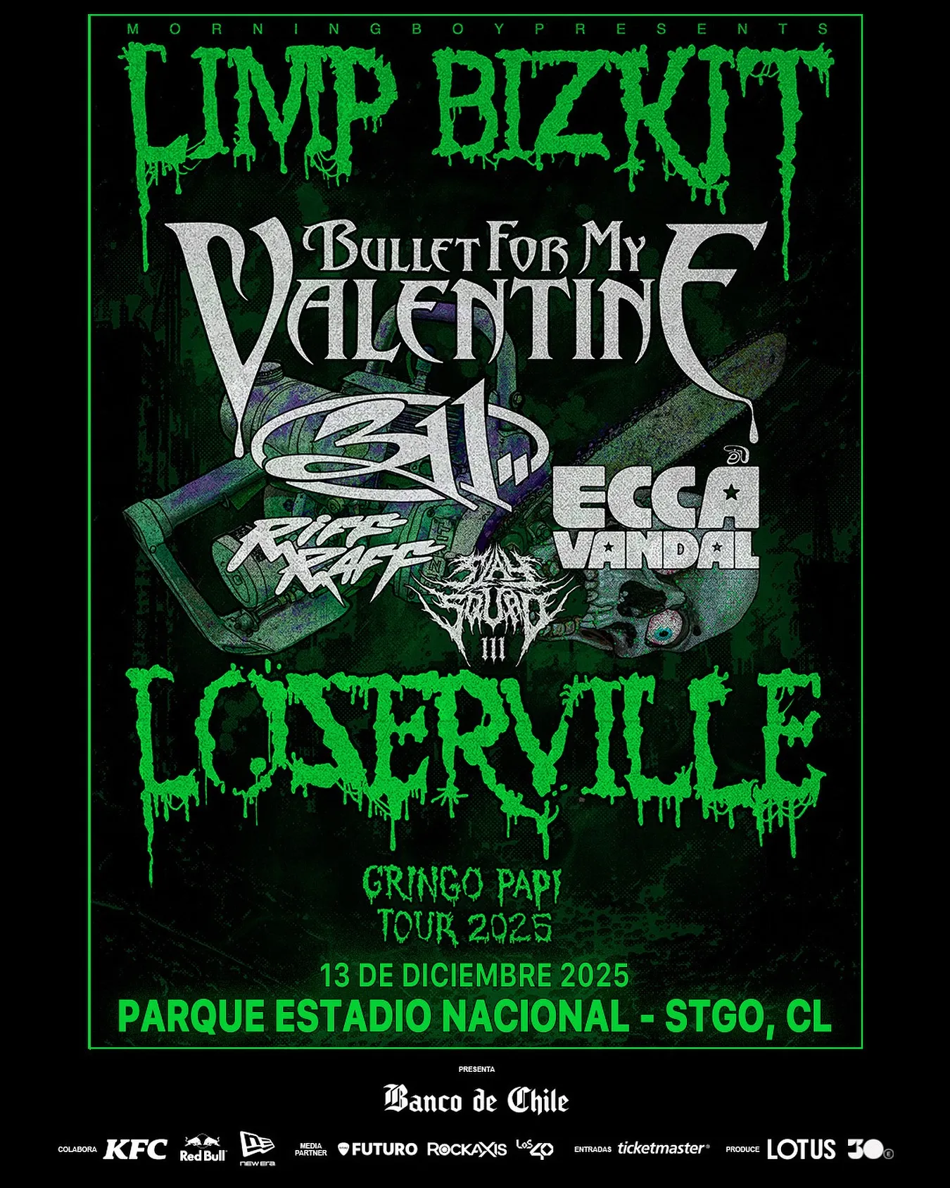 Cabe recordar que el lineup incluye, además de Limp Bizkit, a Bullet For My Valentine, 311, Ecca Vandal, Slay Squad y Riff Raff.