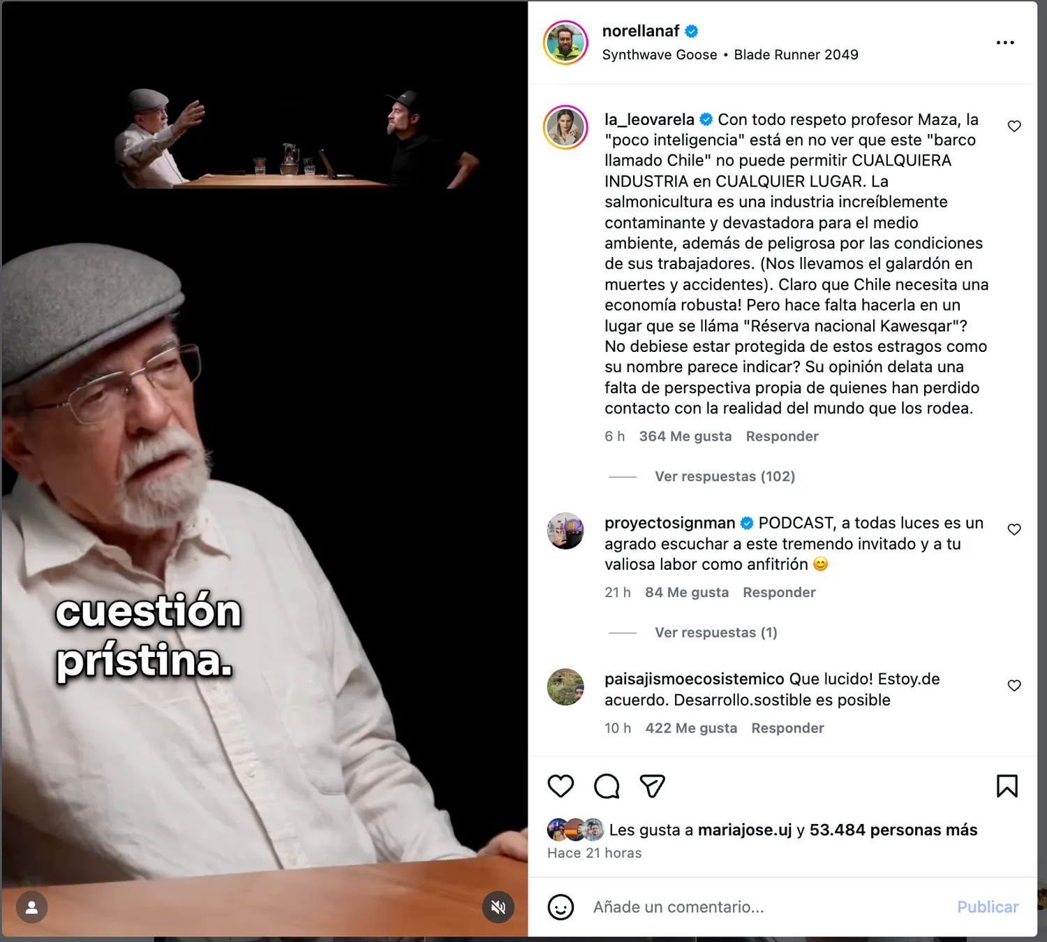 Una polémica surgió tras las críticas del profesor José Maza hacia Leonor Varela por su postura contra la industria salmonera en Chile. Maza defendió el peso económico y el empleo que genera el rubro, mientras que Varela respondió en redes sociales acusando a la industria de contaminante y peligrosa. La actriz cuestionó la ubicación de la actividad en la Reserva Nacional Kawesqar. La discusión generó reacciones divididas entre los usuarios, con 364 Me gusta en el comentario de Varela y 102 respuestas.