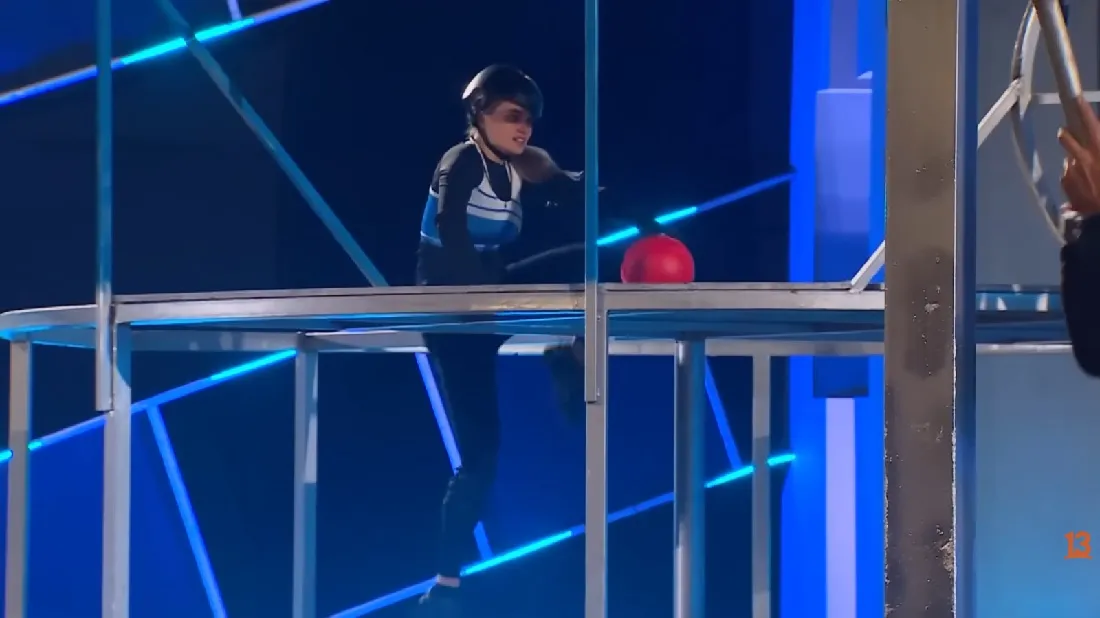 En tal instancia, se enfrentó a Mario Ortega en un circuito que implicaba rescatar unas pelotas de plumavit e insertarlas en una estructura con púas.