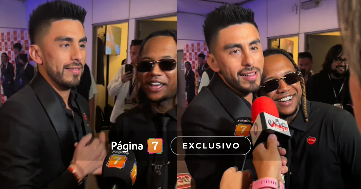 Mientras Polimá WestCoast conversaba con Página 7, Kanela corrió a abrazar a su colega, tras bajar del escenario del Teatro Teletón.