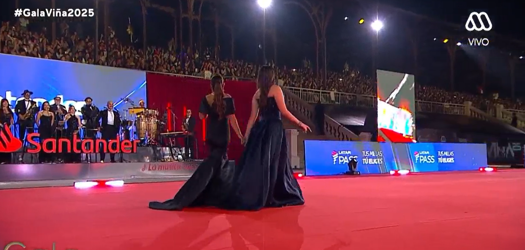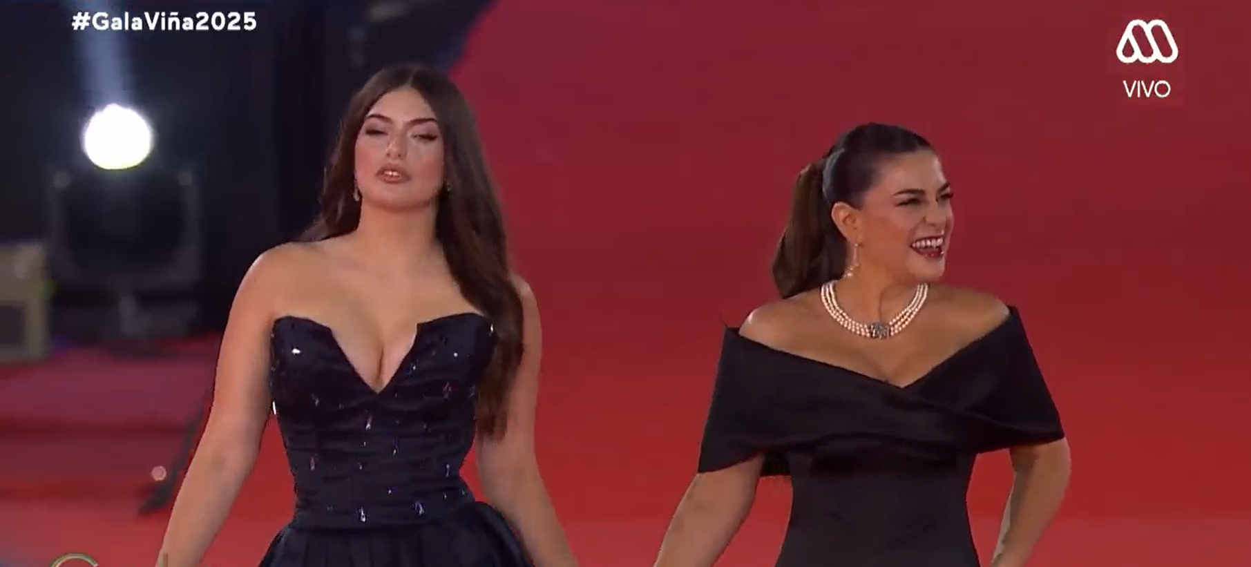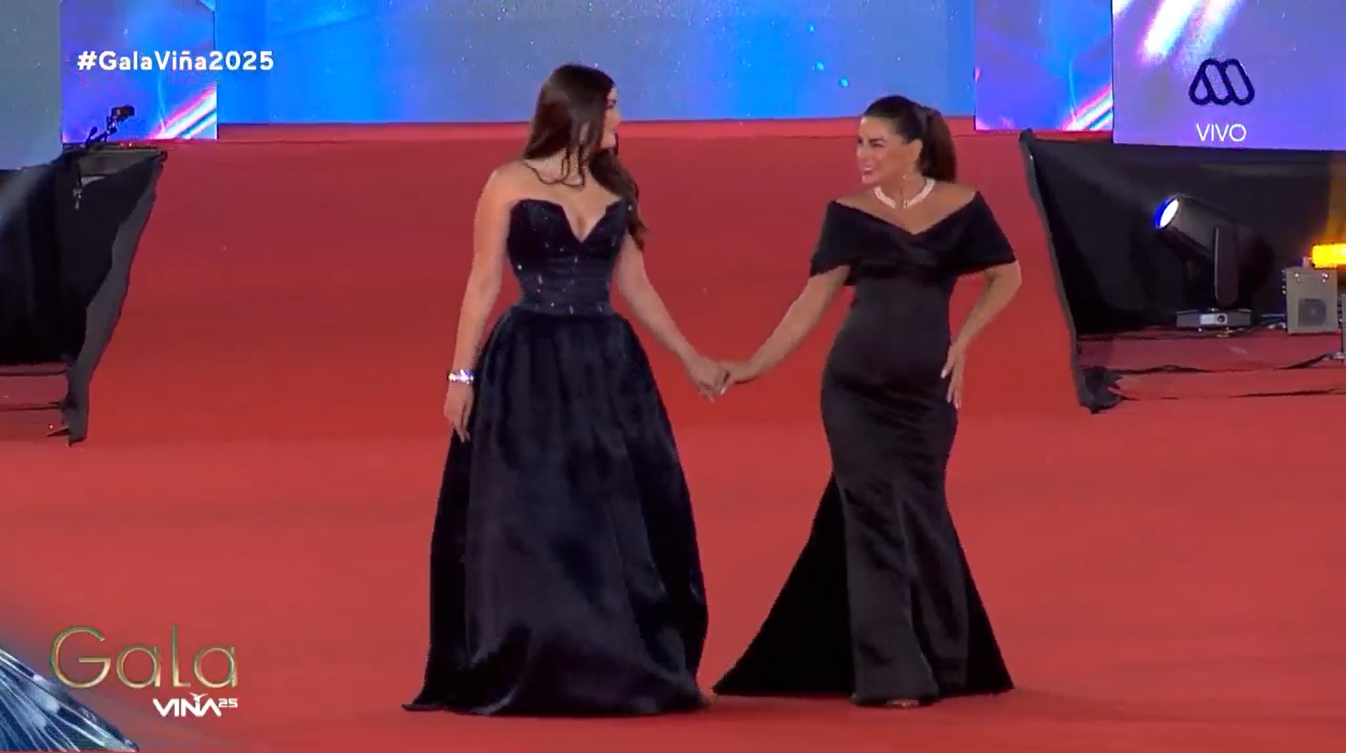 Durante la Gala del Festival de Viña del Mar 2025, Ingrid Cruz capturó la atención al desfilar con su hija de 17 años, Emilia Scheinffel, luciendo elegantes vestidos negros diseñados por Pato Moreno. El ingreso de ambas al Sporting Club de Viña del Mar fue un momento emotivo, siendo acompañadas por modelos y tomadas de la mano mientras recorrían la alfombra roja. El evento resaltó la unión familiar y el estilo impecable de madre e hija, destacando el trabajo de Jean Bohus en sus peinados.