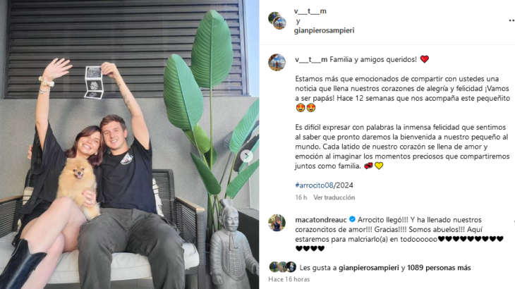 En los comentarios, "Maca" y Alfredo Alonso reaccionaron. "¡Arrocito llegó! Y ha llenado nuestros corazoncitos de amor. Gracias, somos abuelos. Aquí estaremos para malcriarlo(a) en todo", redactó la comunicadora.