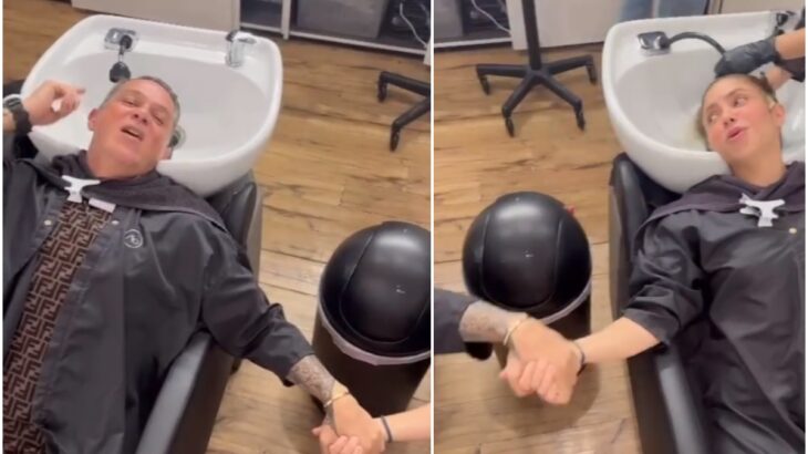 "Así sí da gusto ir a la pelu (peluquería)", expresó la intérprete mientras disfrutaba de un lavado de cabello.