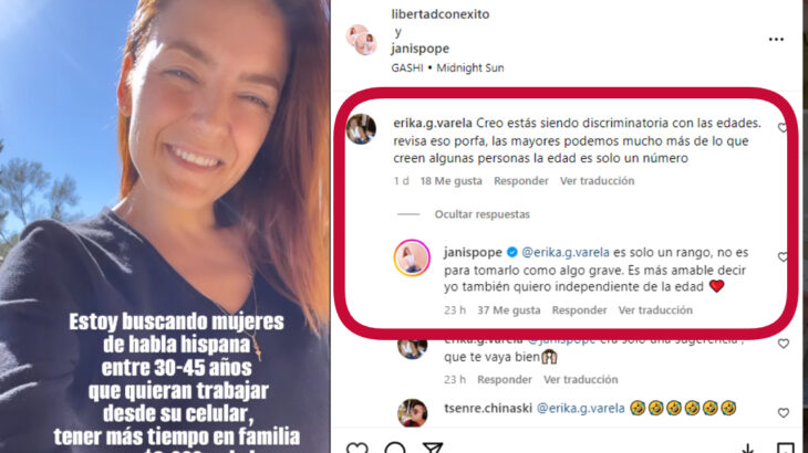 “Creo estás siendo discriminadora con las edades, revisa eso por favor. Las mayores podemos mucho más de lo que creen algunas personas, la edad es solo un número”; “Qué fome que haga discriminación por edad. Mi mamá estaba interesada, pero tiene 50”; “No Janis, tú no dejaste abierta posibilidades. Si hubieras puesto mujeres a partir de... hubiera sido discutible”, fueron algunos de los mensajes.