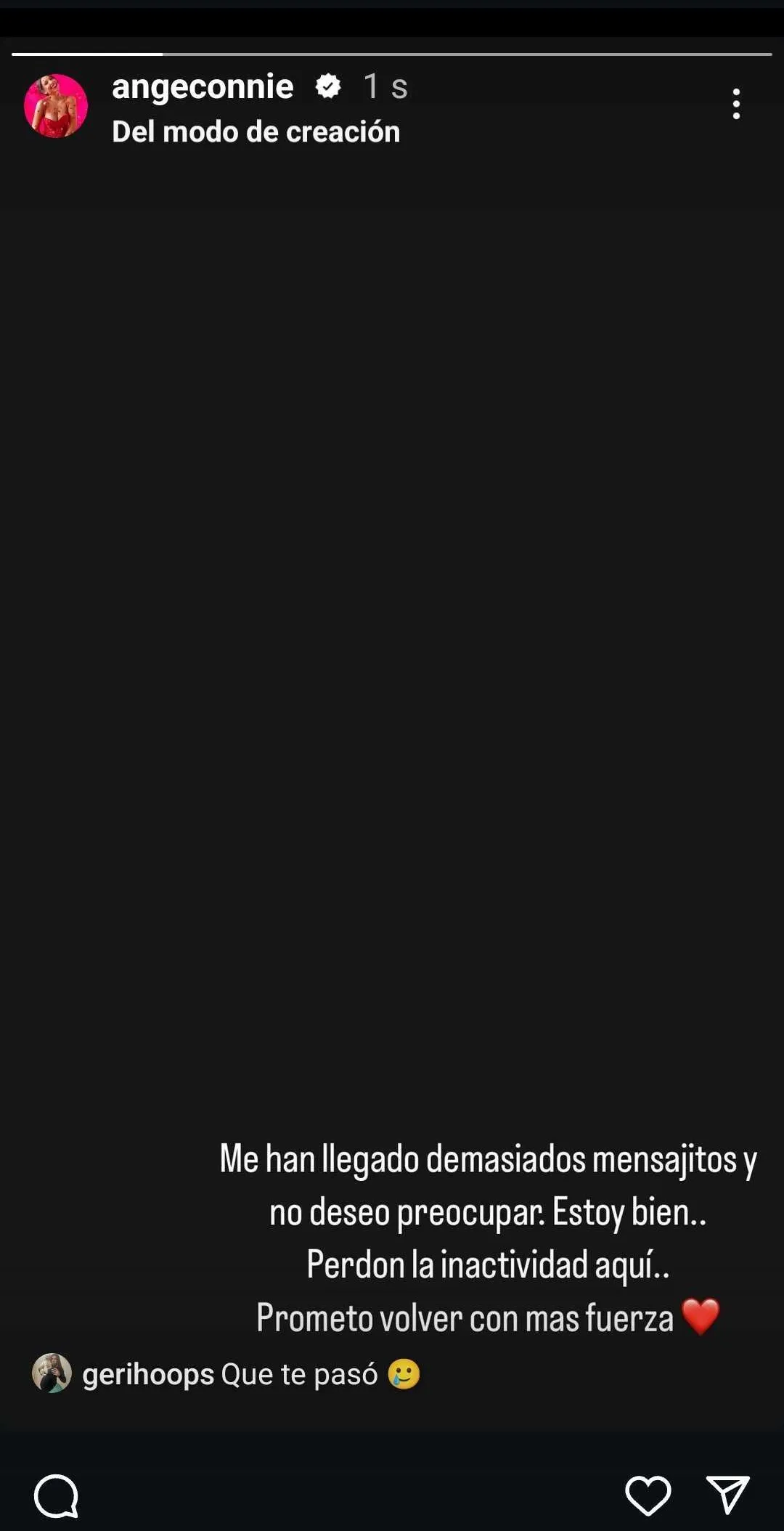 "Perdón por la inactividad aquí... Prometo volver con más fuerza", cerró con un emoji de corazón.