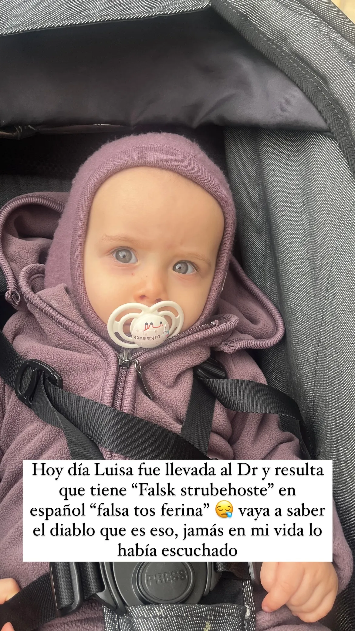 Finalmente, contó que le tocó doctor con su bebé, del que salió un tanto confundida. “Hoy día Luisa fue llevada al doctor y resulta que tiene ‘Falsk strubehoste’, en español ‘falsa tos ferina’. Vaya a saber el diablo qué es eso, jamás en mi vida lo había escuchado”.