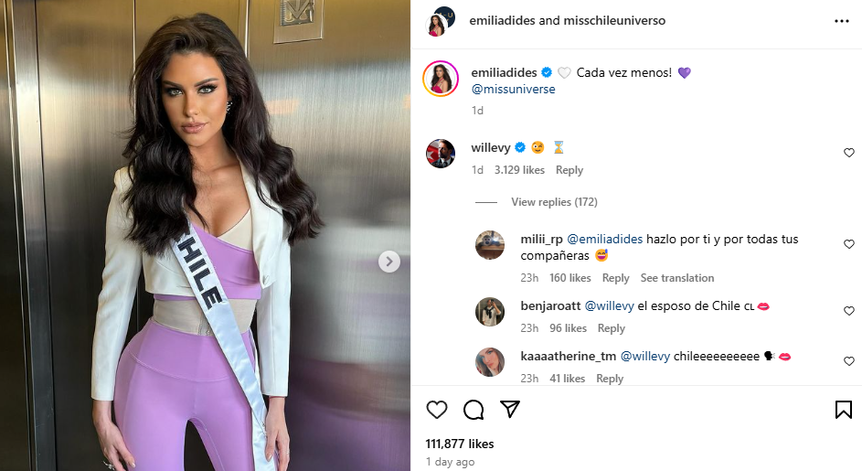 Mientras la candidata chilena se prepara para el Miss Universo 2024, el galán cubano desató una ola de reacciones por dejarle un interesante mensaje en su Instagram.