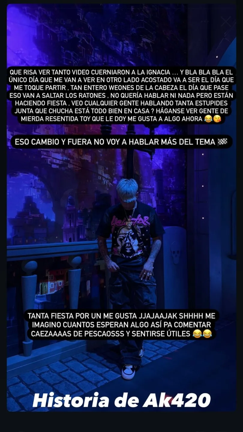 El músico chileno, AK4:20, tuvo que salir al paso de los rumores sobre una posible infidelidad a su novia, Ignacia Antonia.
